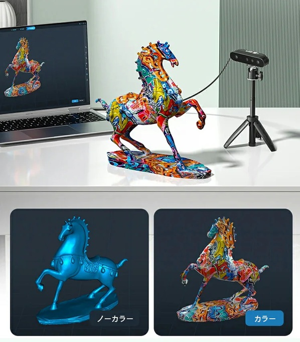 3Dスキャナーを用いて30~2000mmの対象物を3Dデータとして取り込み、取り込んだデータはカラーにも対応しているので映像を見るように楽しめます。